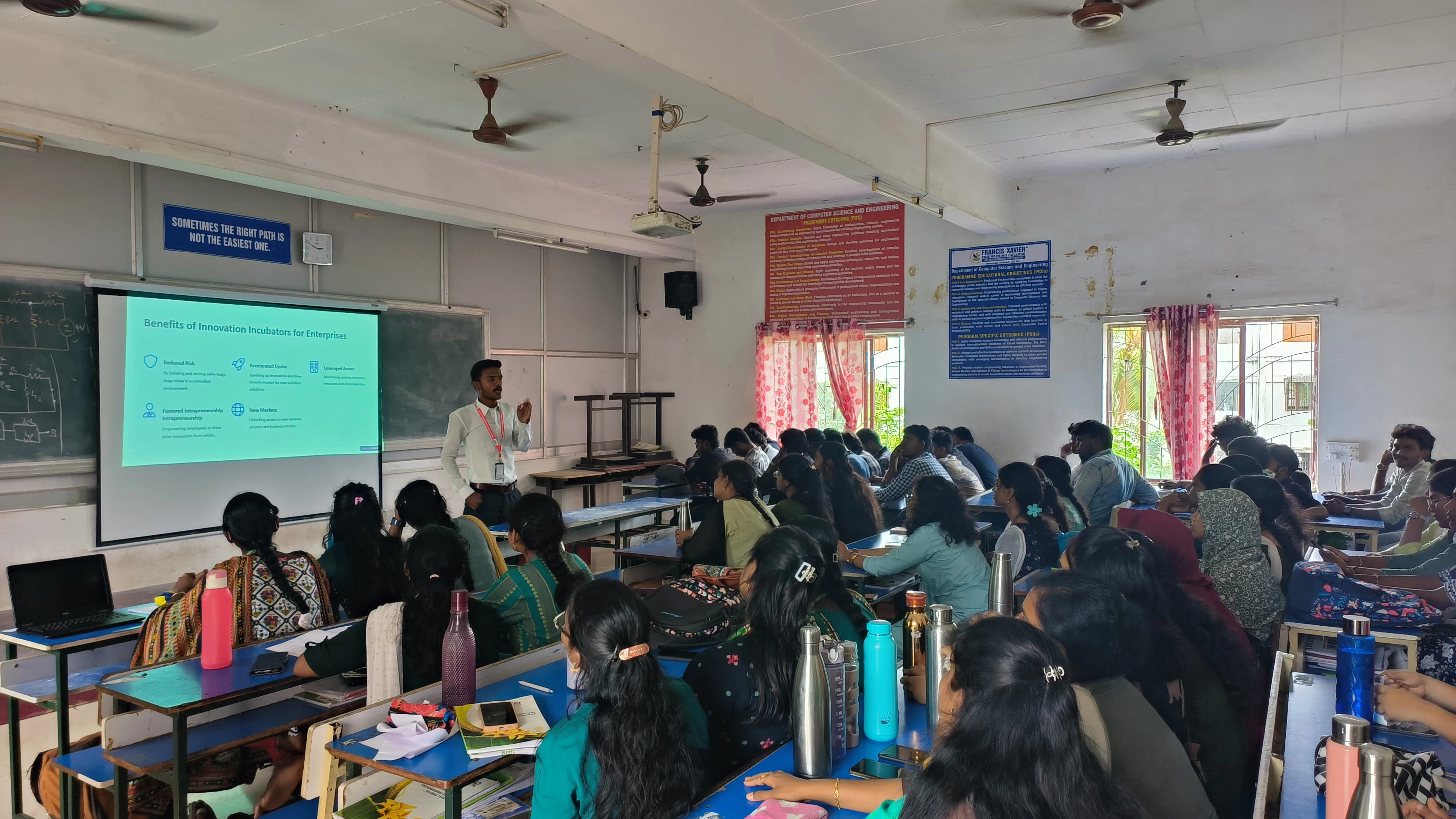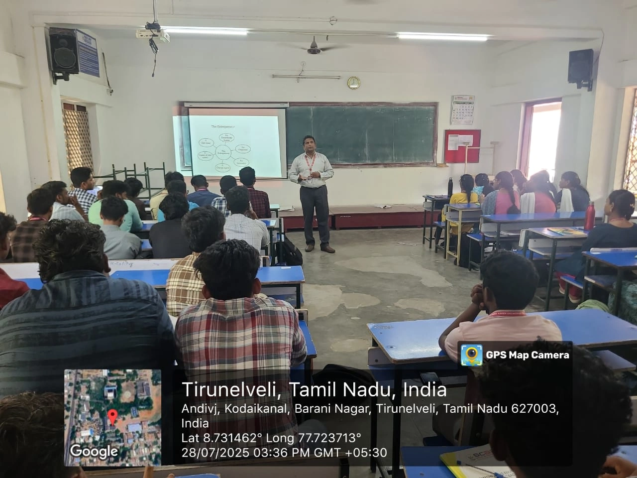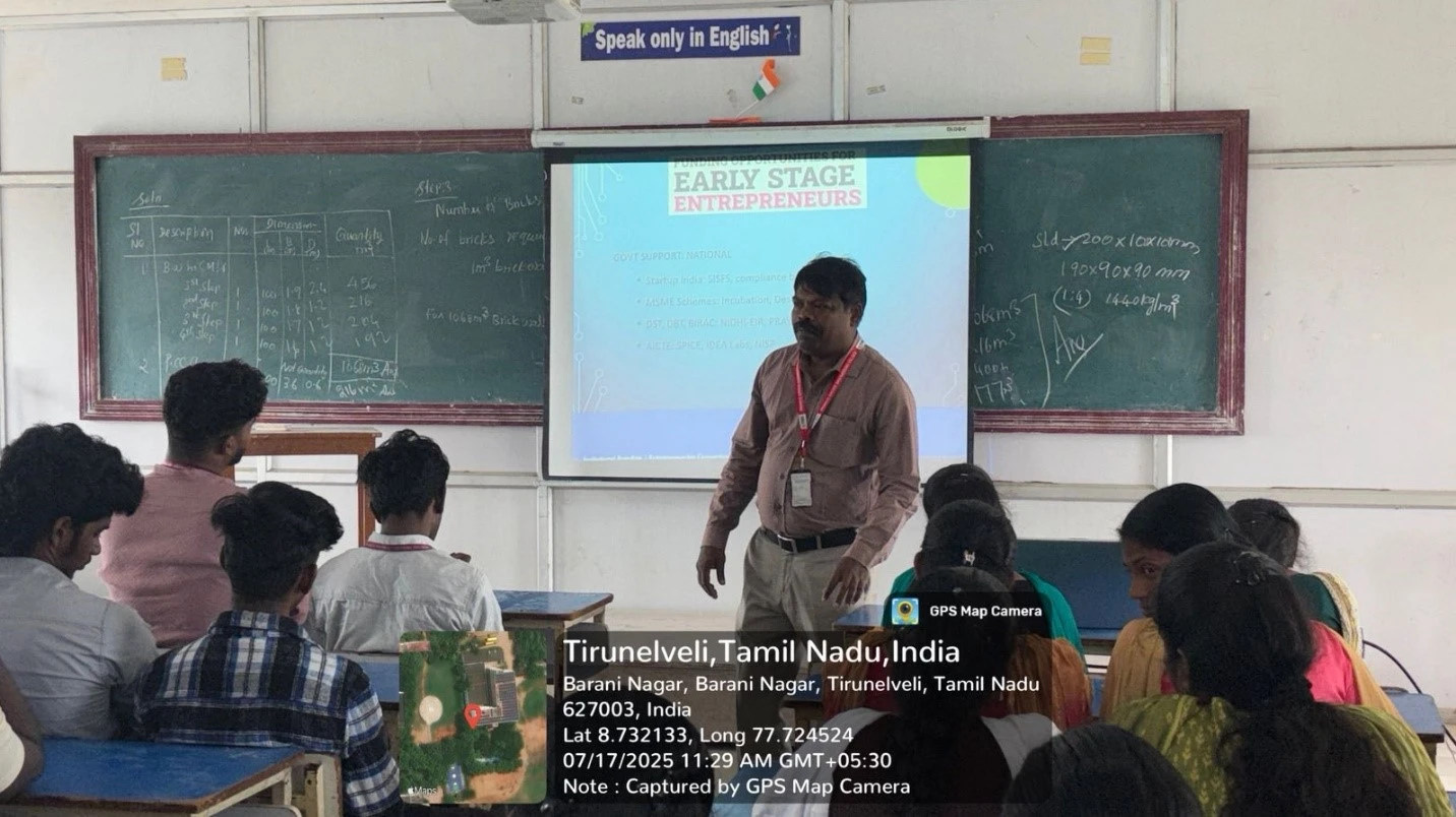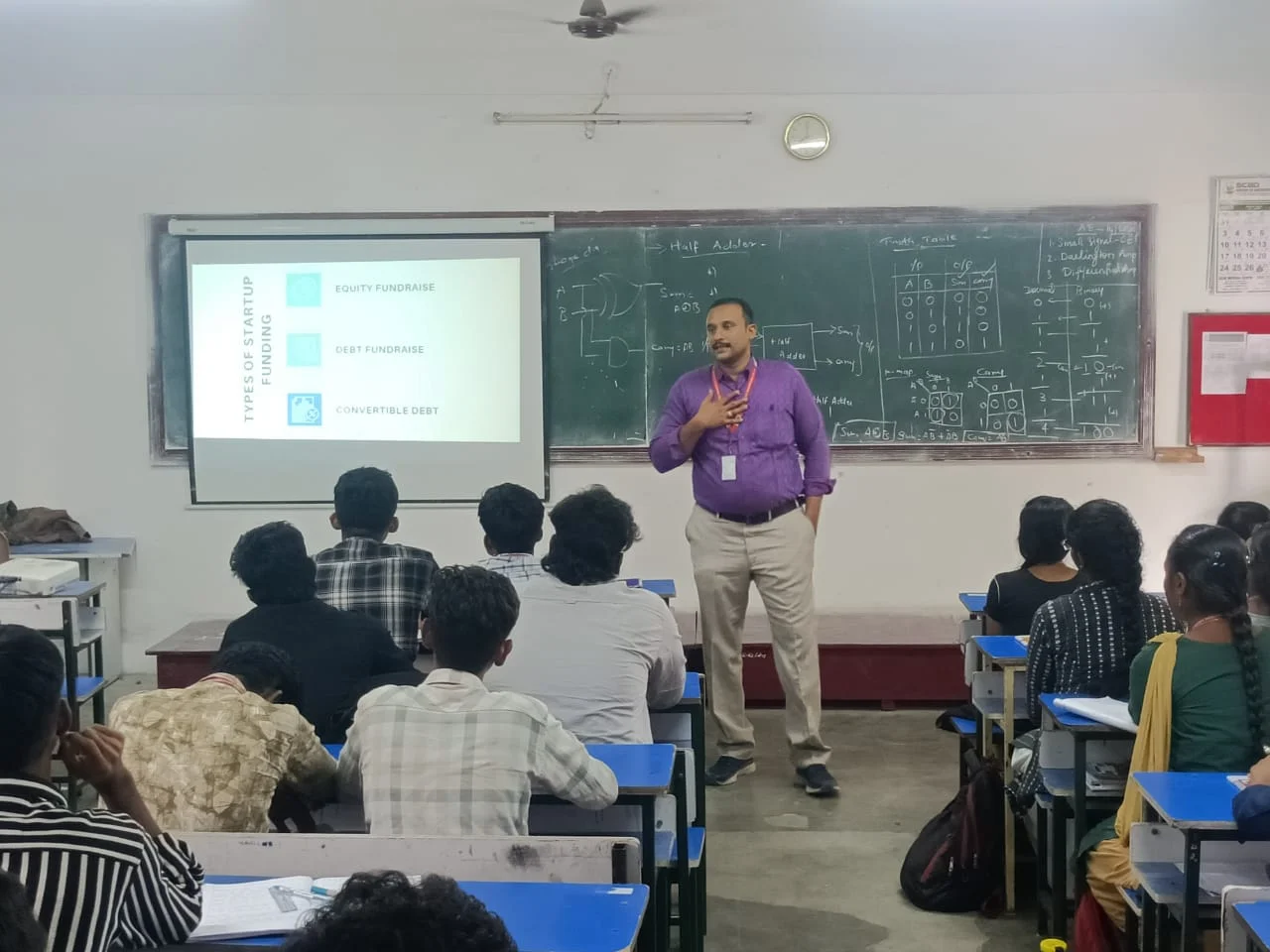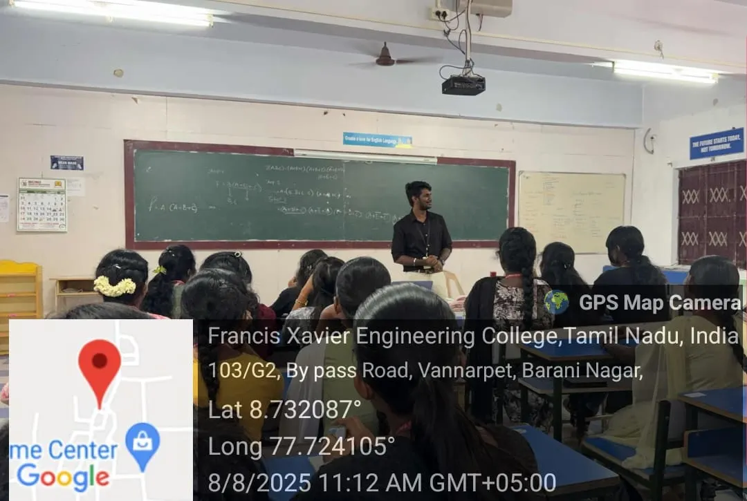 On 25.07.2025 a session was organized on the title “Incubation to Innovation: Mentoring the Student Entrepreneurs”by the Entrepreneurship Development Cell and Institution’s Innovation Council in association with the Computer Science and Engineering department. The session was handled by Mr.M.Chandru, Assistant Professor Department of Information Technology, FXEC. 56 CSE A students and 2 faculty participated in the program. This event was coordinated by Mrs.M.Sathya, Assistant Professor, Computer Science and Engineering Department, Francis Xavier Engineering College