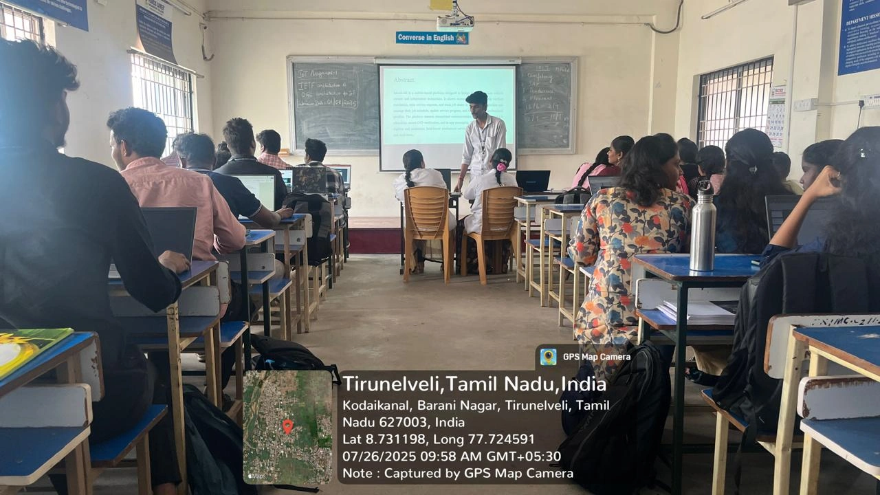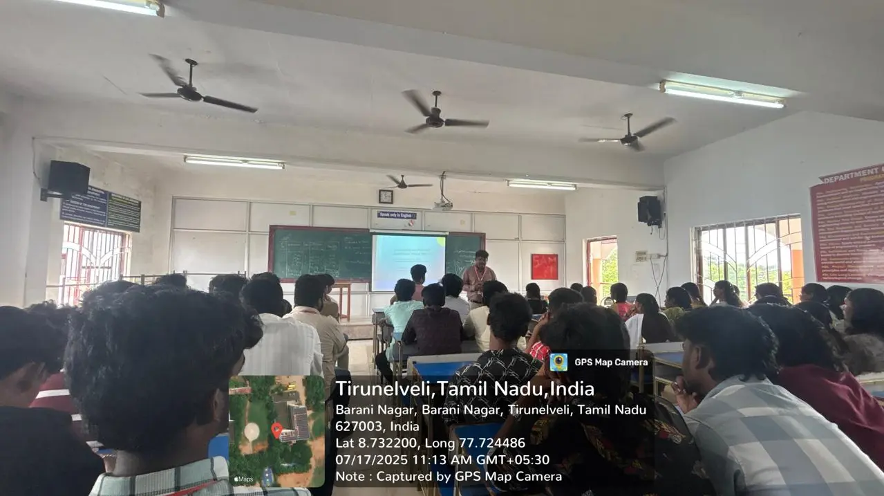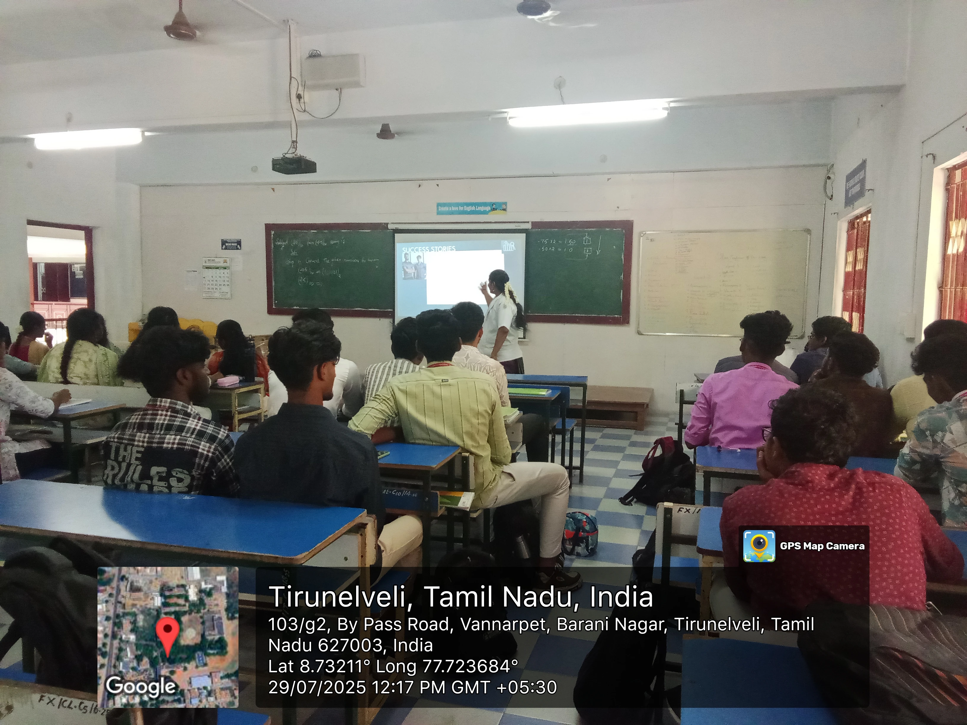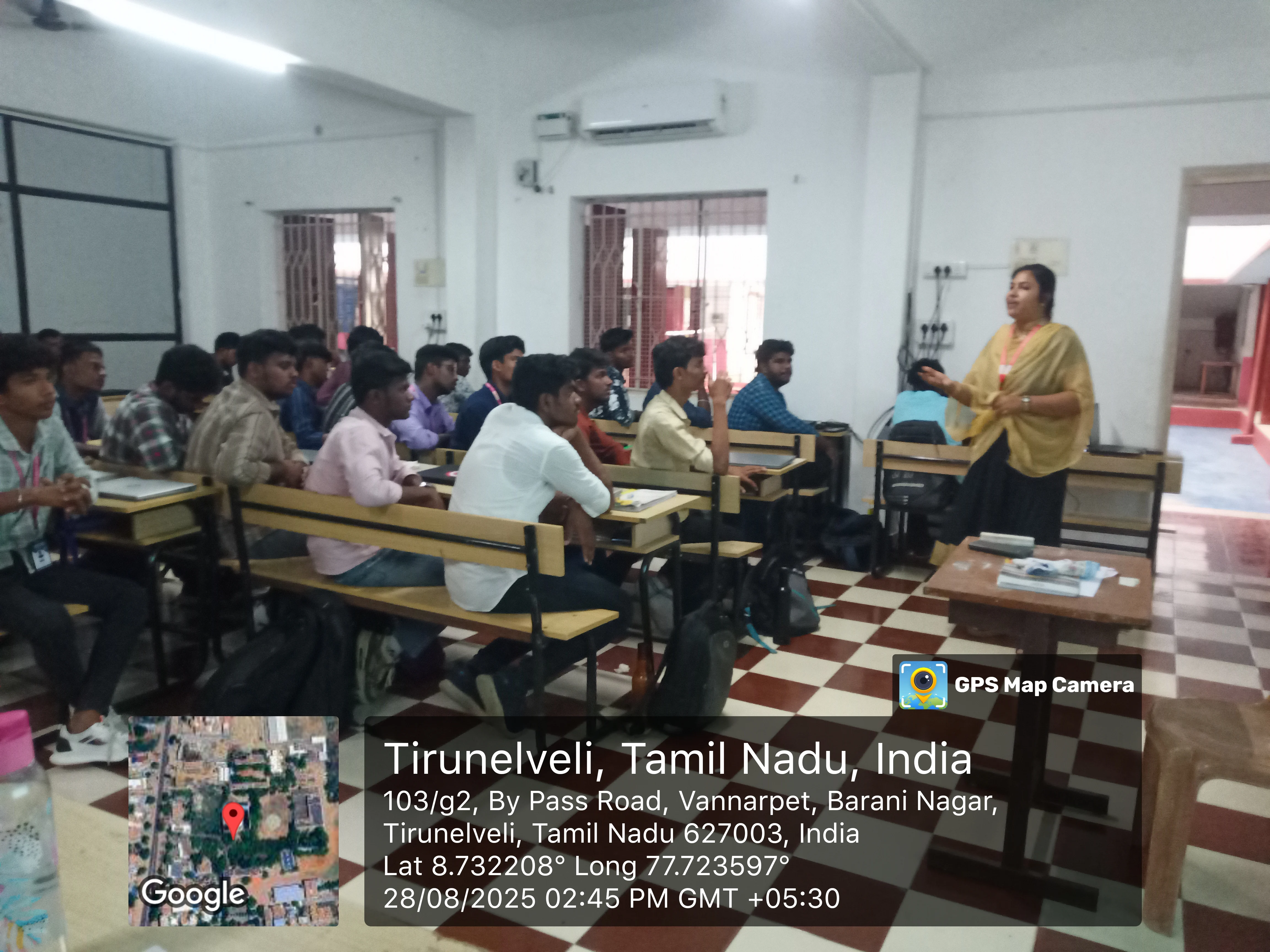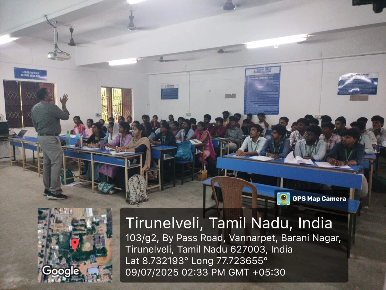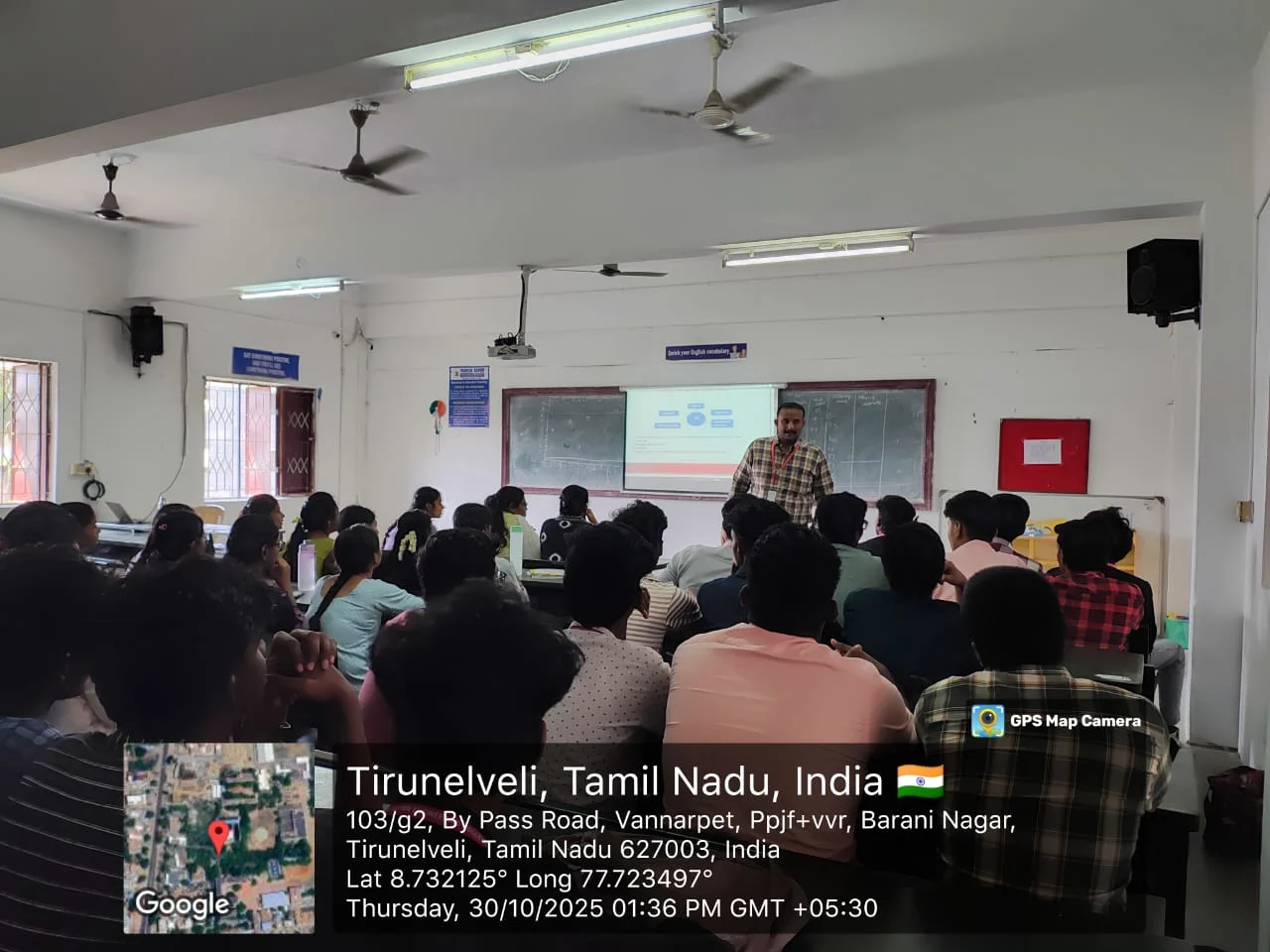 On 25.07.2025 a session was organized on the title “Incubation to Innovation: Mentoring the Student Entrepreneurs”by the Entrepreneurship Development Cell and Institution’s Innovation Council in association with the Computer Science and Engineering department. The session was handled by Mr.M.Chandru, Assistant Professor Department of Information Technology, FXEC. 56 CSE A students and 2 faculty participated in the program. This event was coordinated by Mrs.M.Sathya, Assistant Professor, Computer Science and Engineering Department, Francis Xavier Engineering College