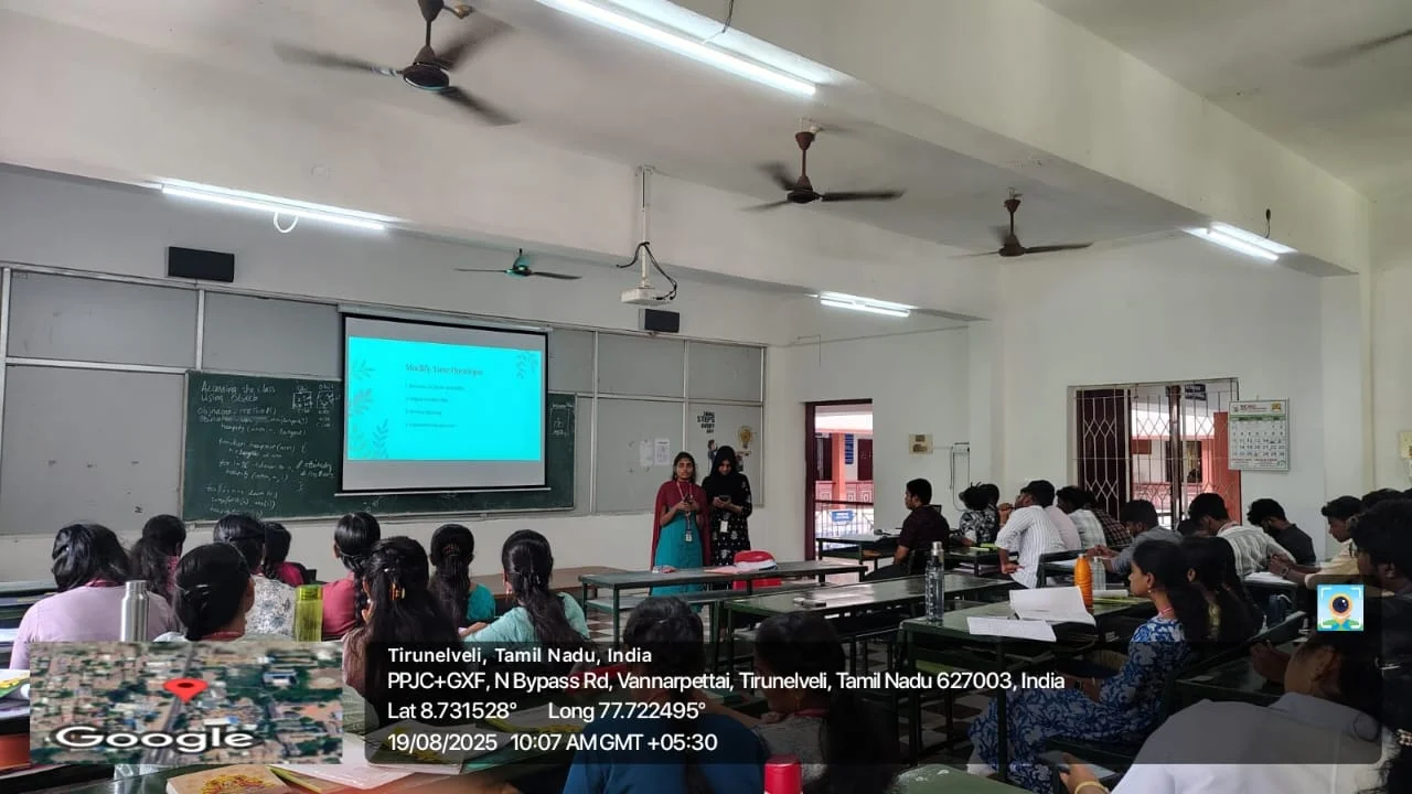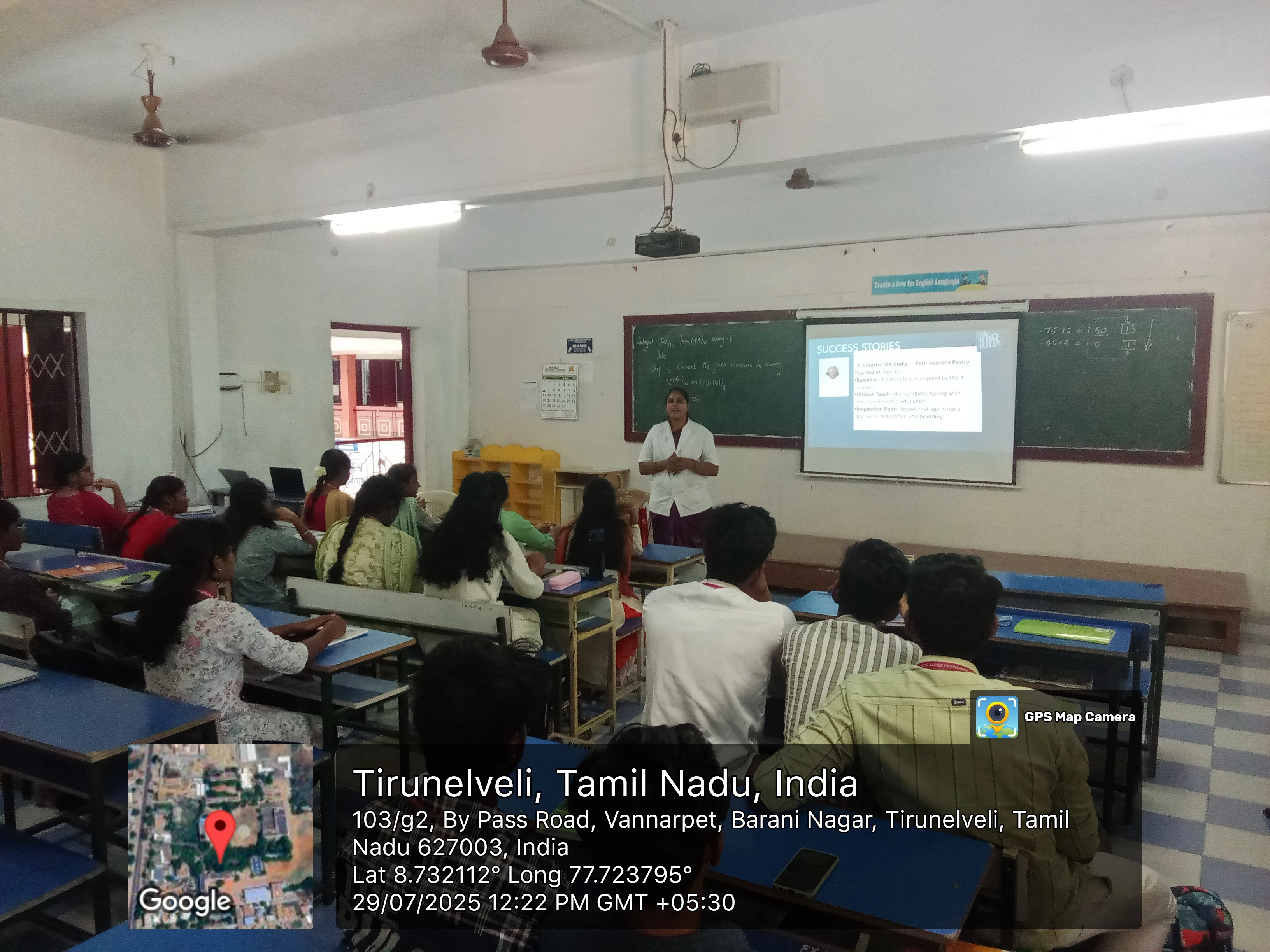 On 25.07.2025 & 26.07.2025 a session was organized on the title “Presentation & Mentoring of Innovative Ideas” by the Entrepreneurship Development Cell and Institution’s Innovation Council in association with the Department of MCA. The session was handled by Mrs. D. Angeline Ranjithamani", Assistant professor, Department of MCA, Francis Xavier Engineering College.40, I MCA students and 2 faculties participated in the program.