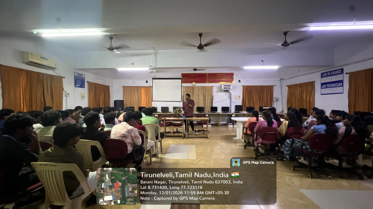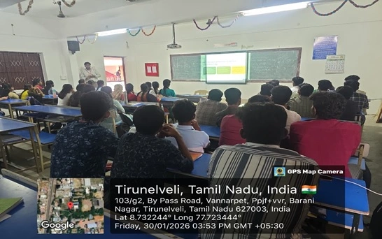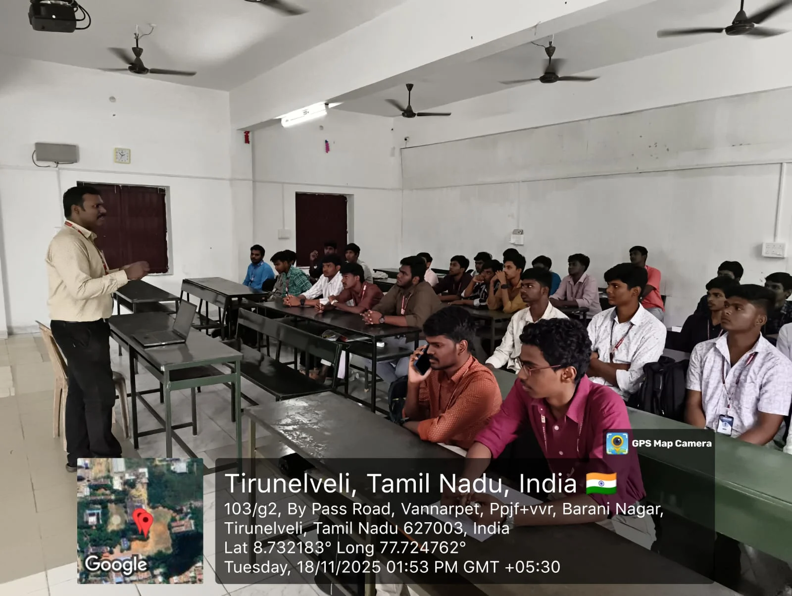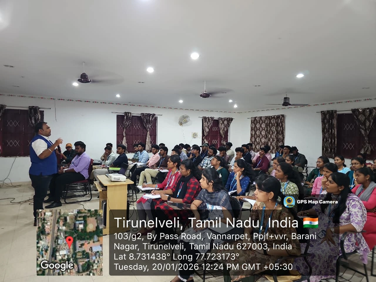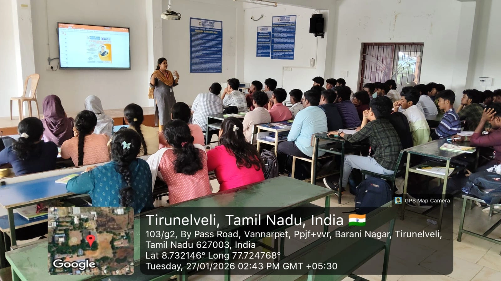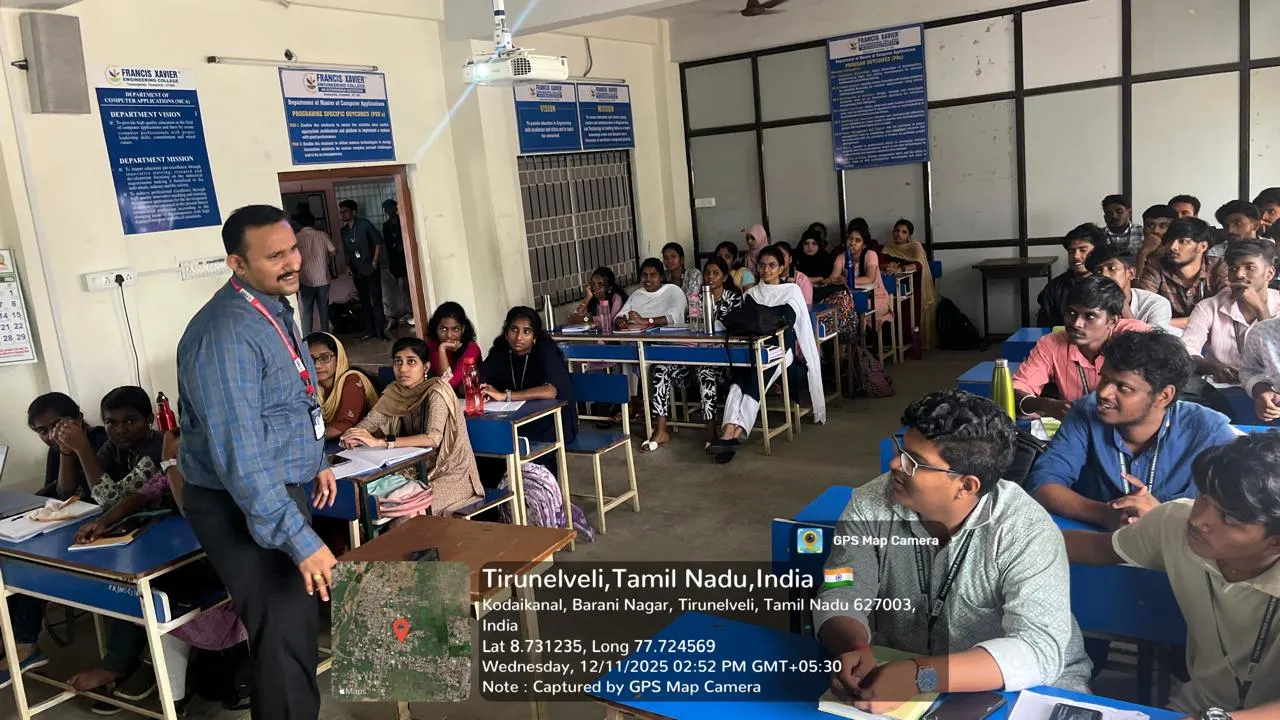 On 30.1.2026 a session was organized on the title “Entrepreneurship as a Career Path for the budding Engineers.” by the Entrepreneurship Development Cell and Institution’s Innovation Council in association with the Department of Electrical and Electronics. The session was handled by Mr. J. Selva Prakash , Director, J S Automotive Training Centre, Tirunelveli. 41 III EEE students and 2 faculties participated in the program. This event was coordinated by M. Mary Sumitha, Assistant Professor, Department of EEE, Francis Xavier Engineering College.