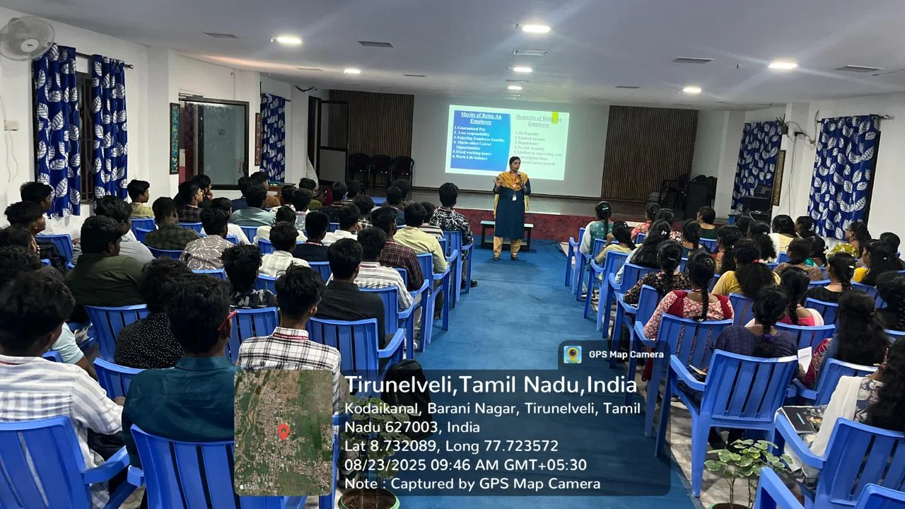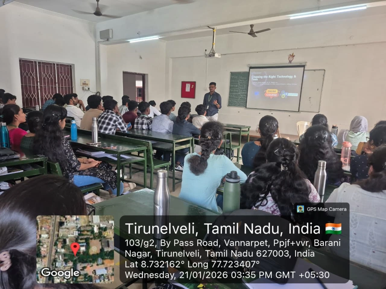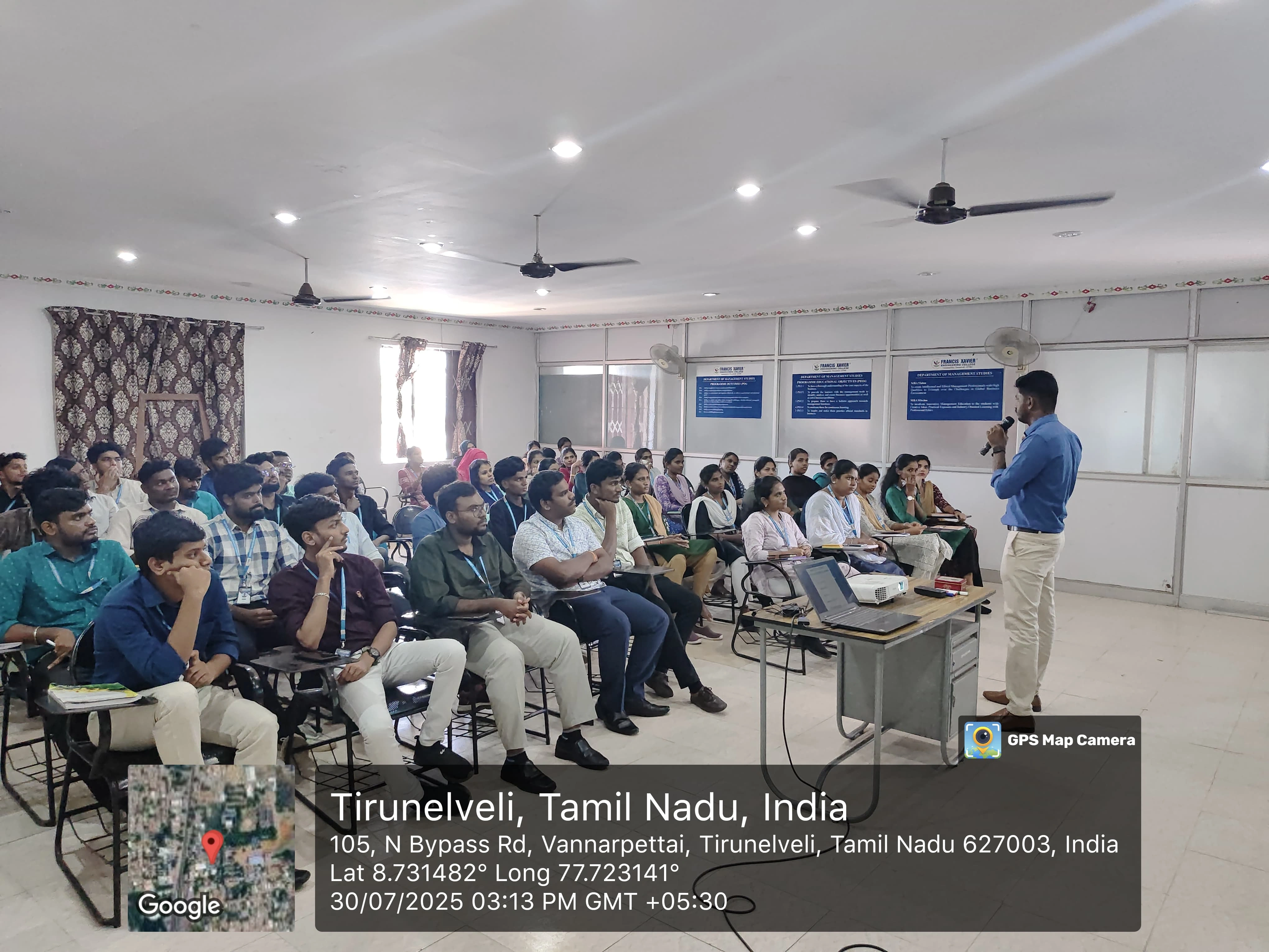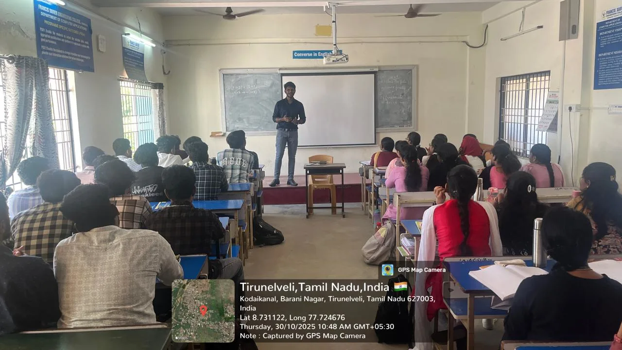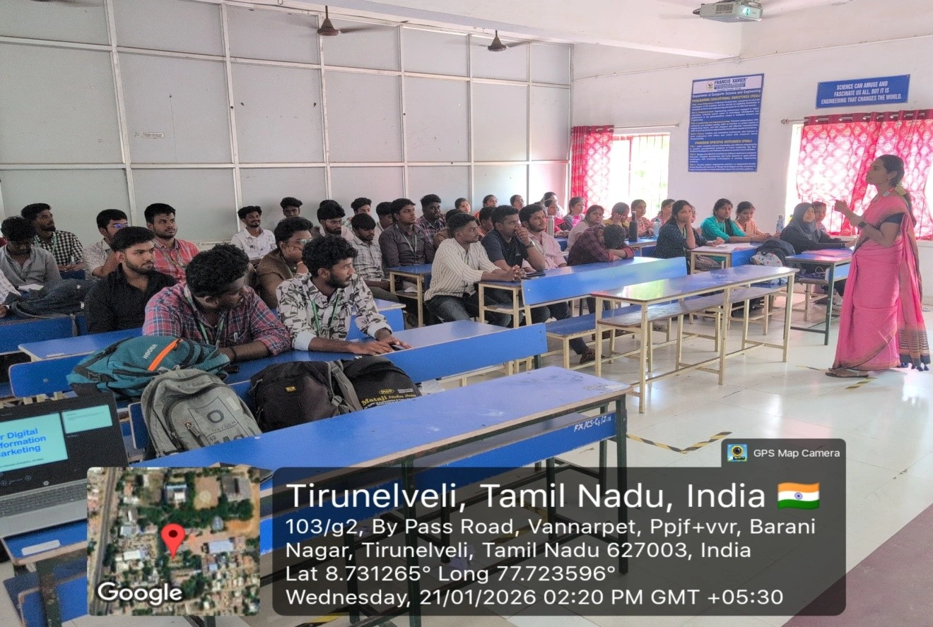 On 30.1.2026 a session was organized on the title “Entrepreneurship as a Career Path for the budding Engineers.” by the Entrepreneurship Development Cell and Institution’s Innovation Council in association with the Department of Electrical and Electronics. The session was handled by Mr. J. Selva Prakash , Director, J S Automotive Training Centre, Tirunelveli. 41 III EEE students and 2 faculties participated in the program. This event was coordinated by M. Mary Sumitha, Assistant Professor, Department of EEE, Francis Xavier Engineering College.