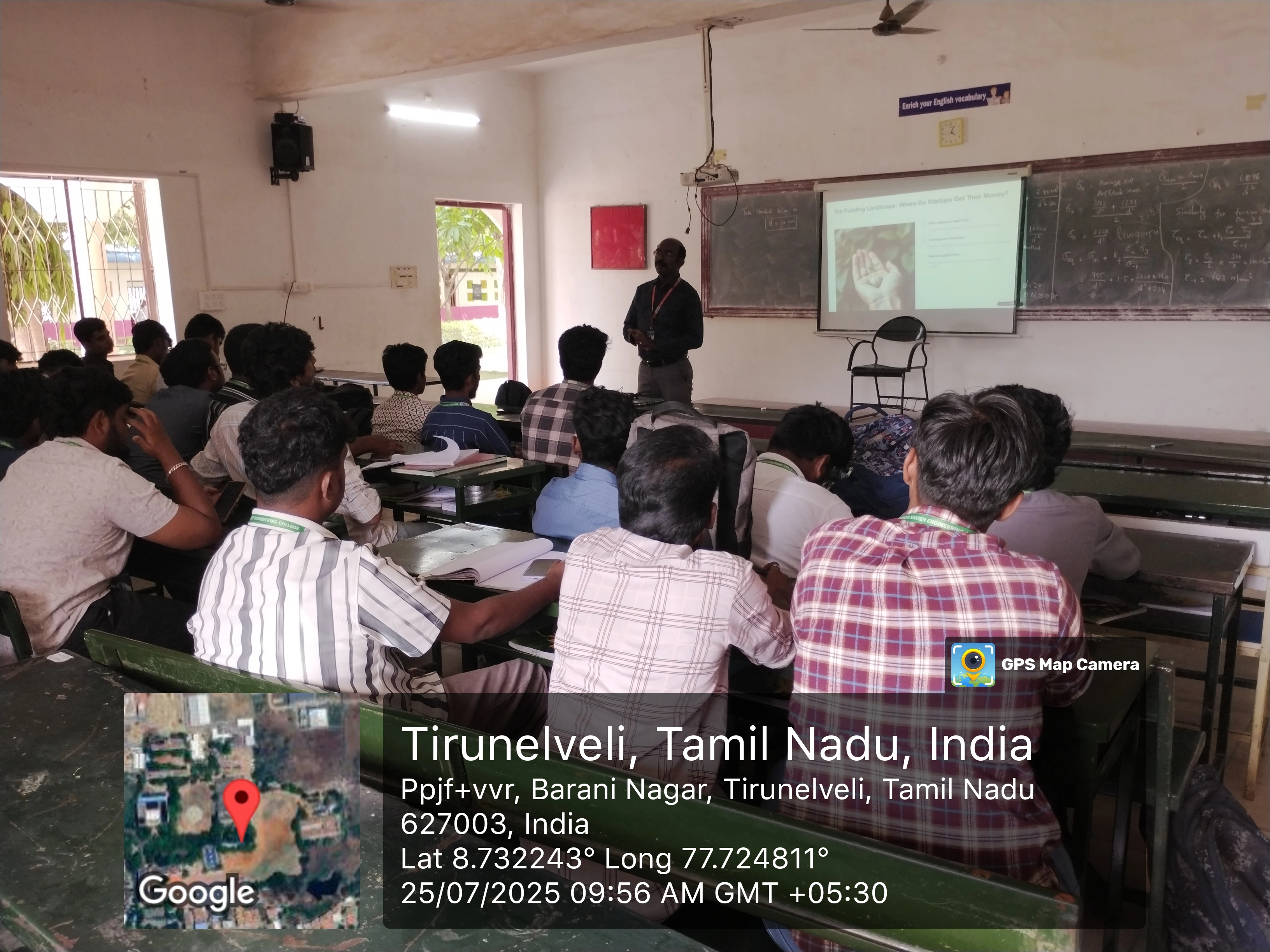 On 18.08.2025 a session was organized on the title “Turning Innovative Ideas into Successful Startups” by the Entrepreneurship Development Cell and Institution Innovation Cell in association with Mechanical Engineering department. The session was handled by Mr.R.Rahesh, Assistant Professor, Francis Xavier Engineering College. 45 Second year Mechanical Engineering students and 2 faculties participated in the program. This event was coordinated by Dr. K.Vinukumar, Assistant Professor, Department of Mechanical Engineering, Francis Xavier Engineering College.