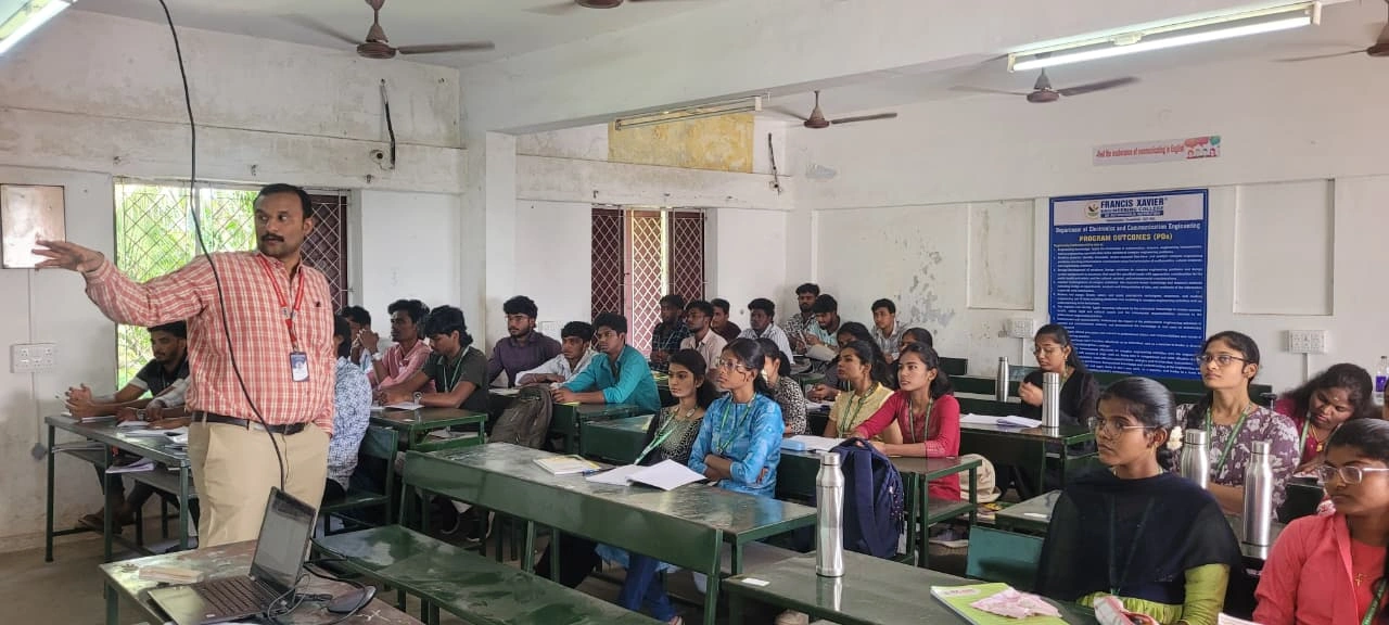 On 12.01.2026, a session titled “Role of youth in Developing Entrepreneurship for the Growth of Country” was organized by the Institution Innovation Council (IIC) in association with the Entrepreneurship Development Cell and the Department of Electronics and Communication Engineering, Francis Xavier Engineering College. The program was handled by Dr. R. Prem Ananth, IIC Convenor and Assistant Professor/ ECE, Francis Xavier Engineering College. 52 I Year ECE ‘C’ students and two faculty members participated. The event was coordinated by Dr. Pradeep T. Rajan, Assistant Professor, ECE. The session introduced students to the importance of user-centric thinking and innovative problem solving in real-world applications.