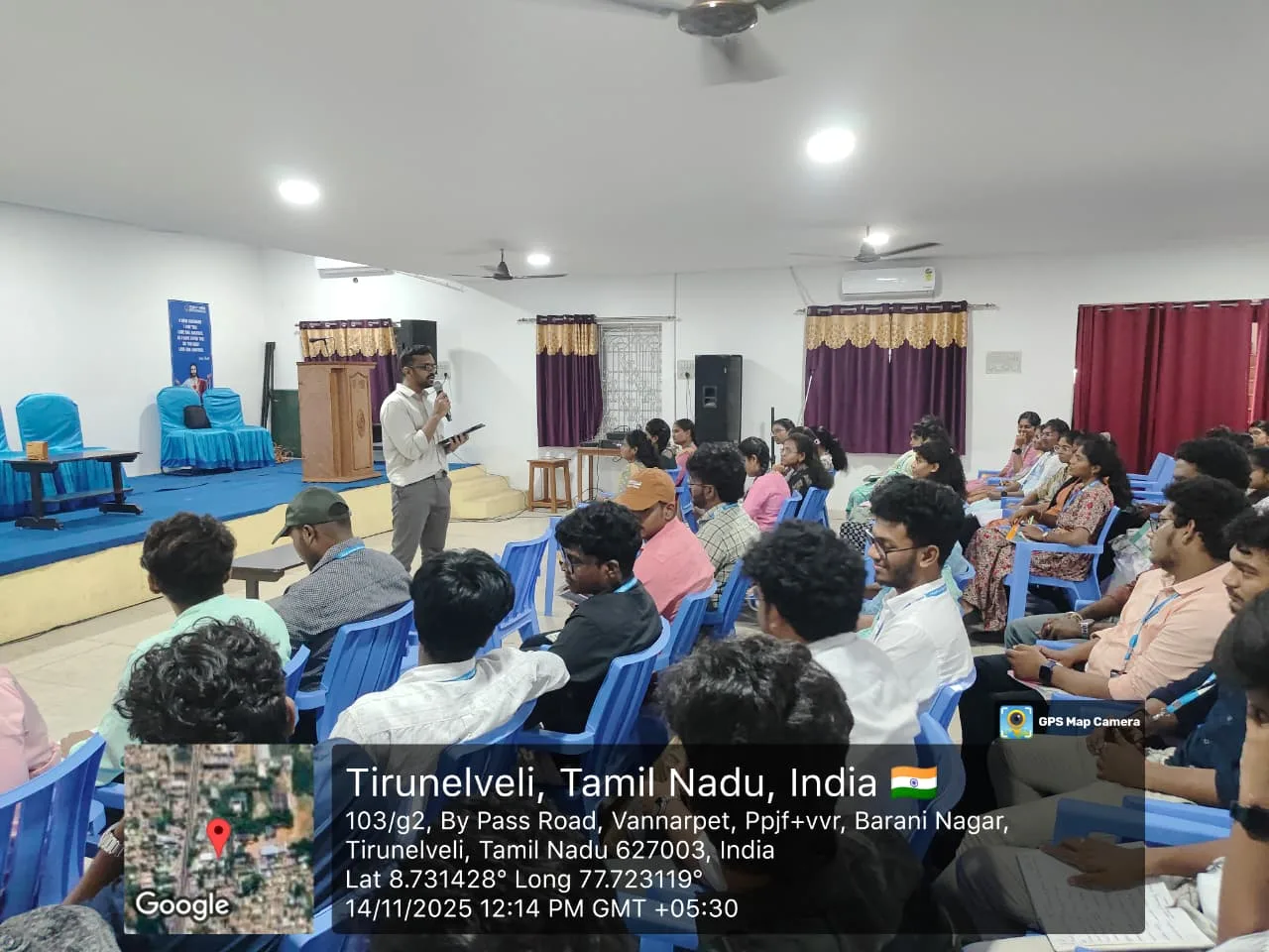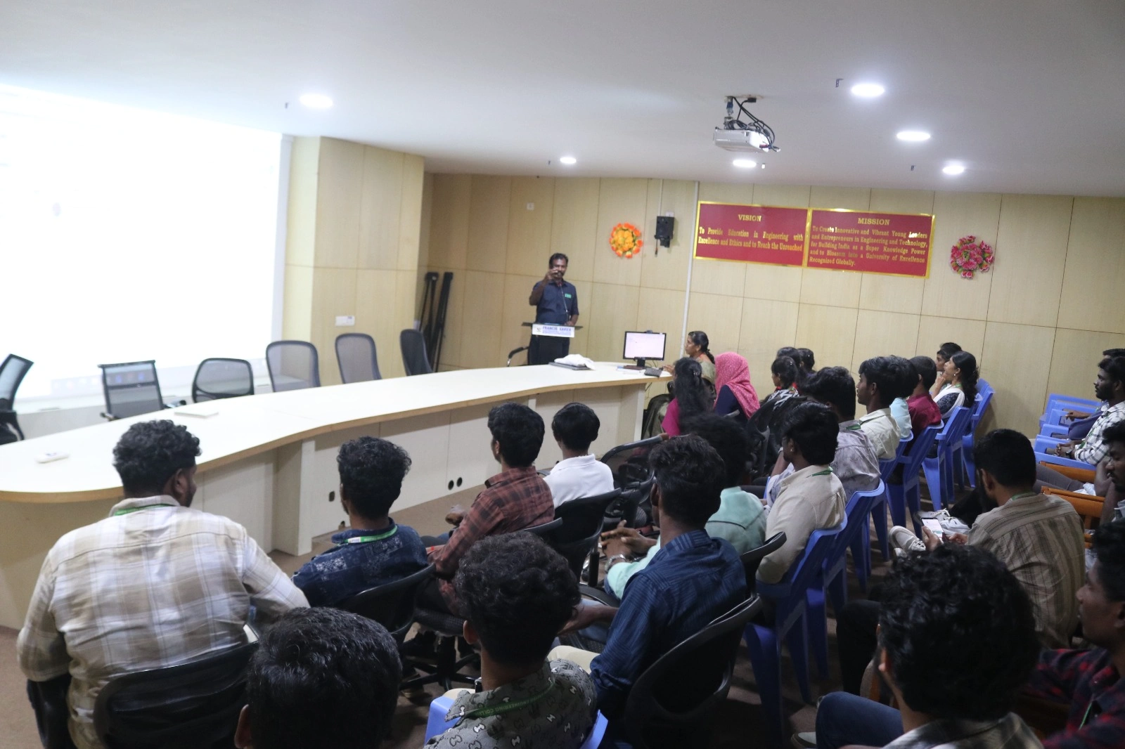 On 14.11.2025 a session was organized on the title “Building a ₹100 Crore Mindset: From Startup Idea to Scalable Enterprise” by the Entrepreneurship Development Cell and IIC through offline mode in association with Department of Management Studies. The session was handled by Mr.P.Dhanugopan, Founder and Investment Chief, Invest2Harvest. 75 students and 3 faculty participated in the program. This event was coordinated by Department of MBA, Francis Xavier Engineering College.