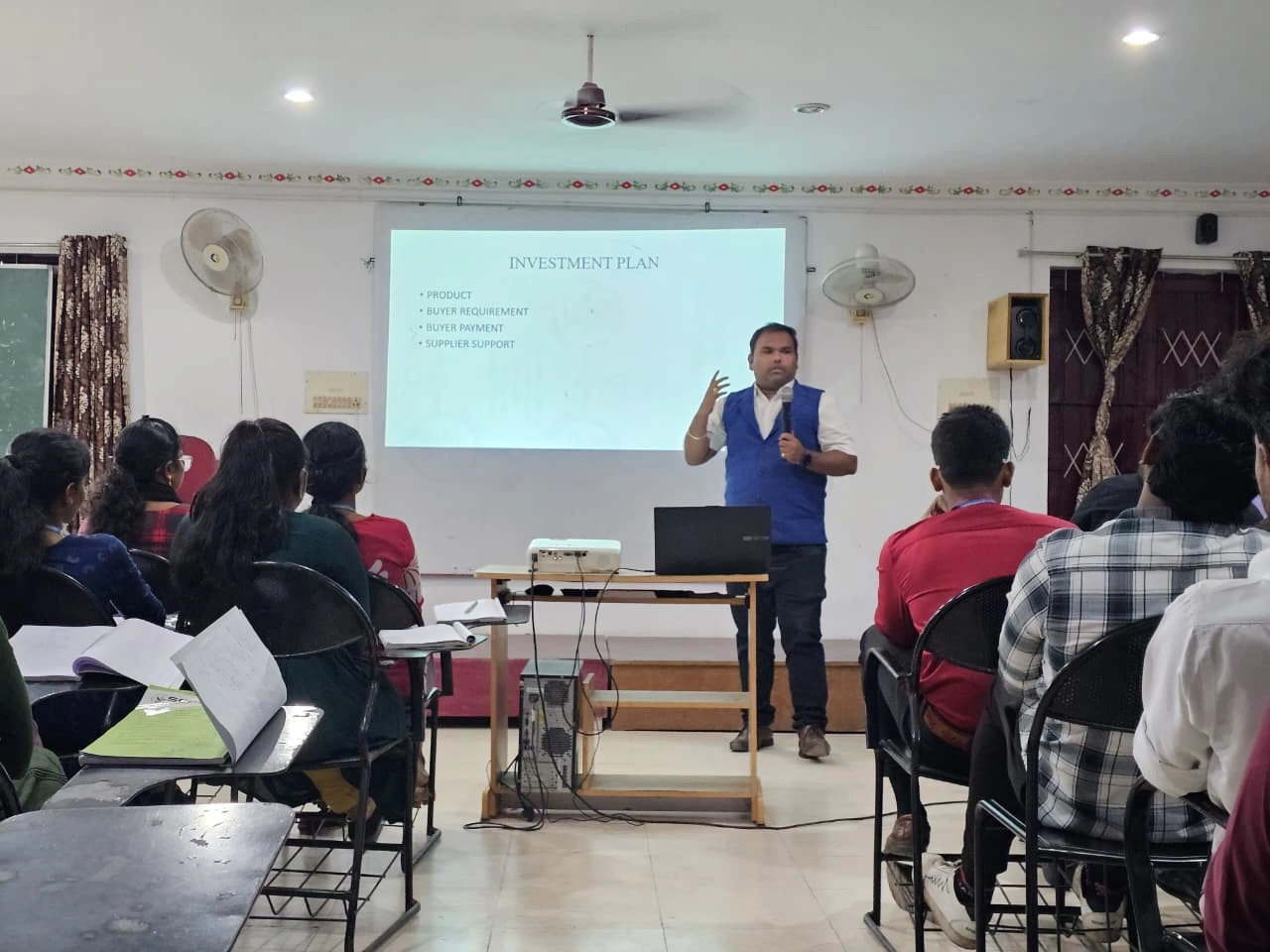 Key Highlights: The guest speaker shared valuable insights on how aspiring entrepreneurs can explore and identify promising business opportunities. The session emphasized the importance of spotting real-world problems, thinking innovatively, and acting decisively. The talk highlighted how understanding the market and using available resources smartly can help young entrepreneurs kick-start and sustain their ventures.