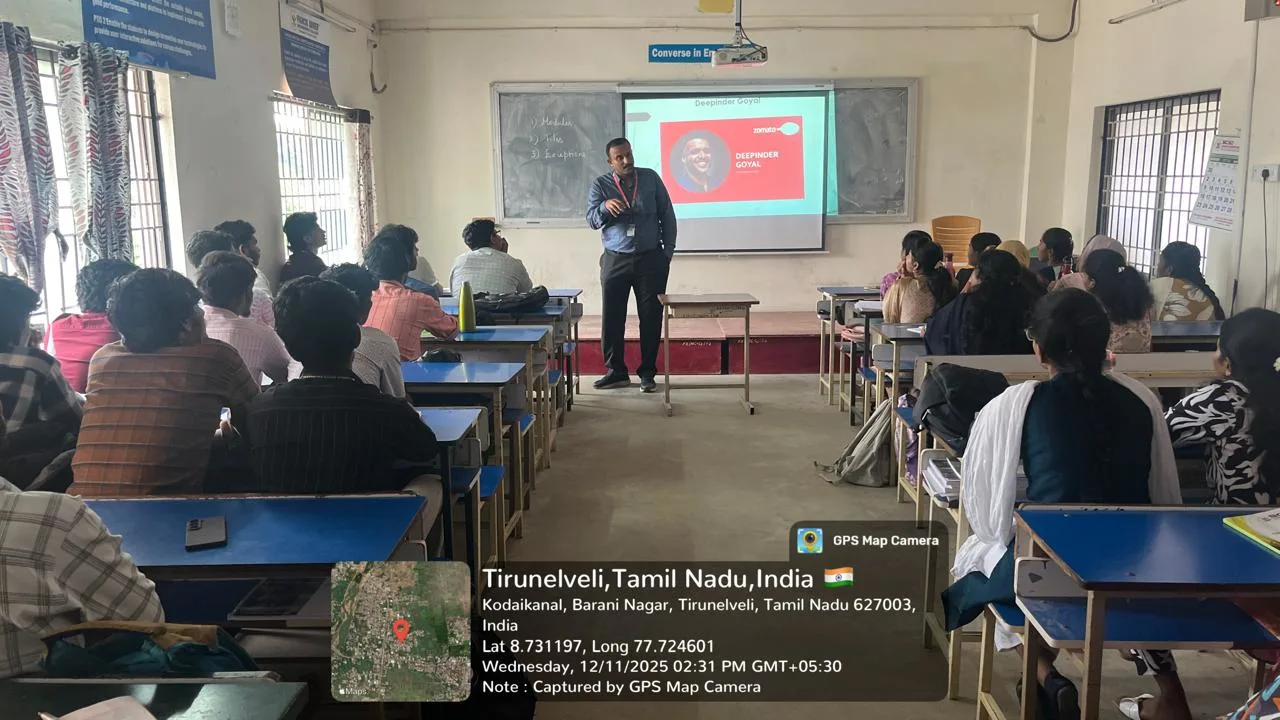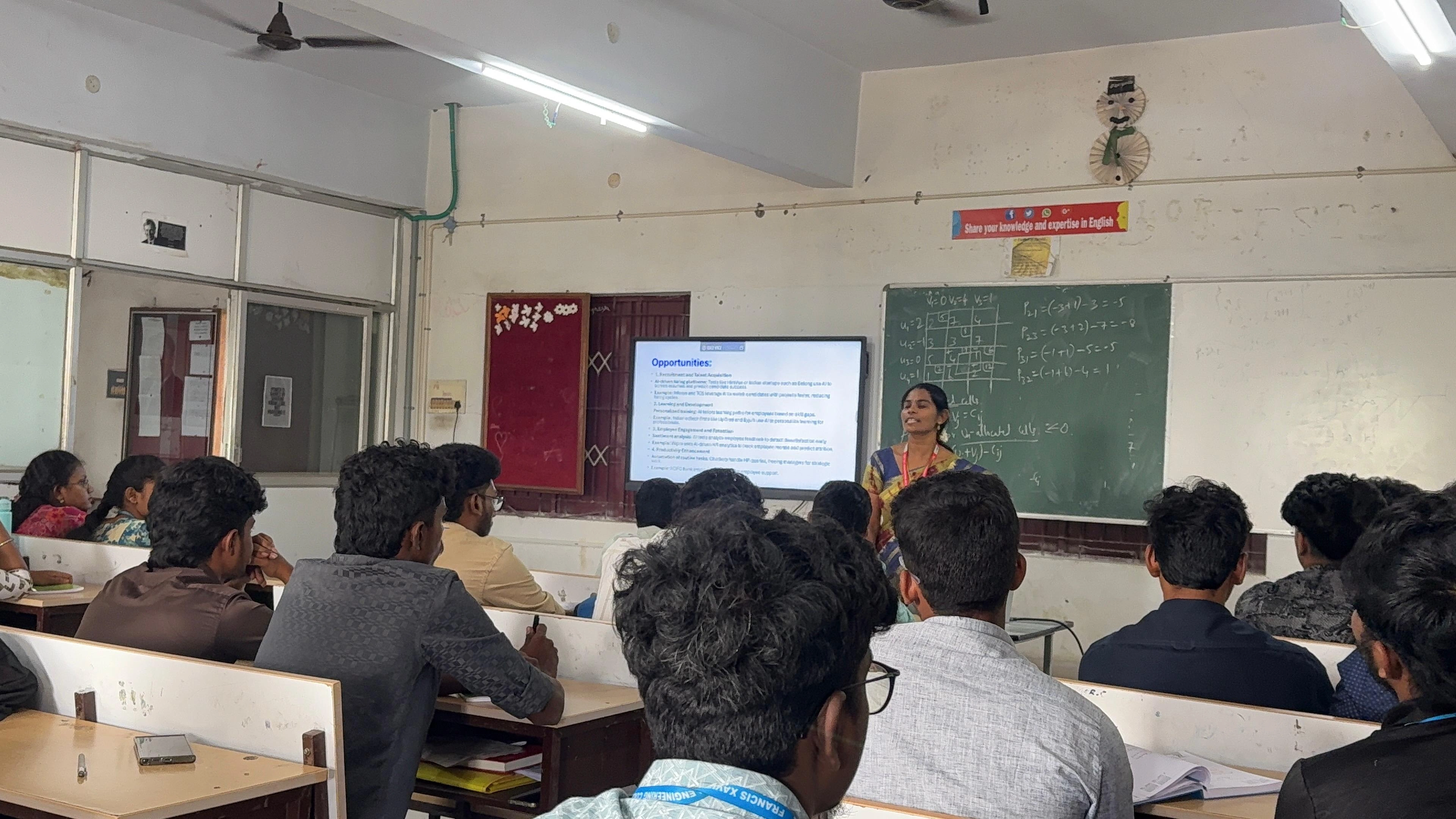 On 07.11.2025 a session was organized on the title “Career Horizons in Entrepreneurship and Innovation” by the Entrepreneurship Development Cell and Institution’s Innovation Council in association with the Computer Science and Engineering department. The session was handled by Mr. Chandru, Assistant Professor, Department of IT, FXEC. 48 I CSE D students and 1 faculty participated in the program. This event was coordinated by Ms. M. Keerthana, Assistant Professor, Department of English, Francis Xavier Engineering College.