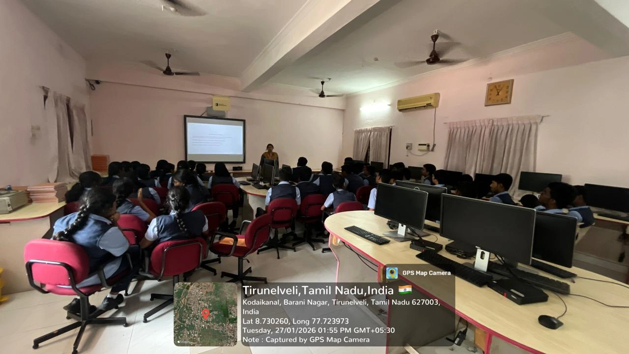 On 27.01.2026, a seminar titled Innovation & Outreach Program titled “Role of AI in Digital Transformation” was conducted for FX CBSE School as part of community and educational outreach initiatives. The program was organized by the Entrepreneurship Development Cell (EDC) and Institution’s Innovation Council (IIC) in association with the Department of MCA. The session was handled by Dr. M. Vijaya Maheswari, Assistant Professor, Department of MCA, Francis Xavier Engineering College, Tirunelveli. A total of 45 students from the MCA department and 2 faculty members participated in the program. Dr. M. Vijaya Maheswari, EDC Coordinator of the MCA department, coordinated the program