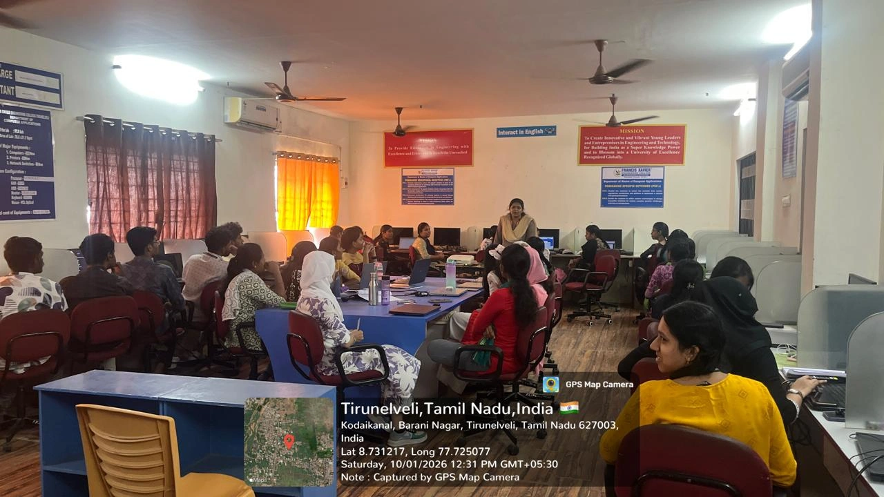 On 30.01.2026 a session was organized on the title “AI as a Tool for Scientific Problem Solving” by the Entrepreneurship Development Cell and Institution’s Innovation Council in association with the Computer Science and Engineering department. The session was handled by Mrs. Sathya, Assistant Professor, Department of CSE, FXEC. 44 I CSE C students and 1 faculty participated in the program. This event was coordinated by Ms. M. Keerthana, Assistant Professor, Department of English, Francis Xavier Engineering College.