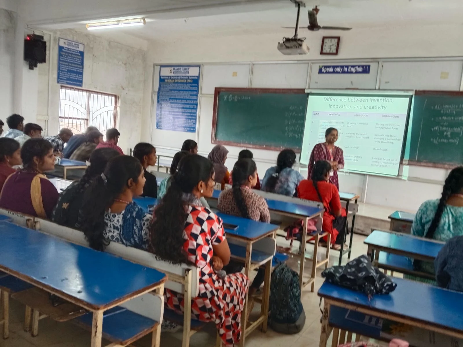 On 26.11.2025 a session was organized on the title “Innovative Thinking and Entrepreneurship: Future Career Options” by the Entrepreneurship Development Cell and Institution’s Innovation Council in association with the Department of Electrical and Electronics. The session was handled by Mrs. M. Mary Sumitha, Assistant Professor / Department Electrical and Electronics Engineering, Francis Xavier Engineering College. 43 I EEE students and 2 faculties participated in the program. This event was coordinated by M. Mary Sumitha, Assistant Professor, Department of EEE, Francis Xavier Engineering College.