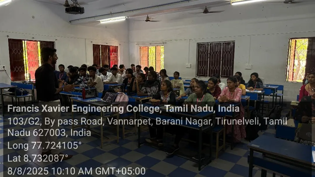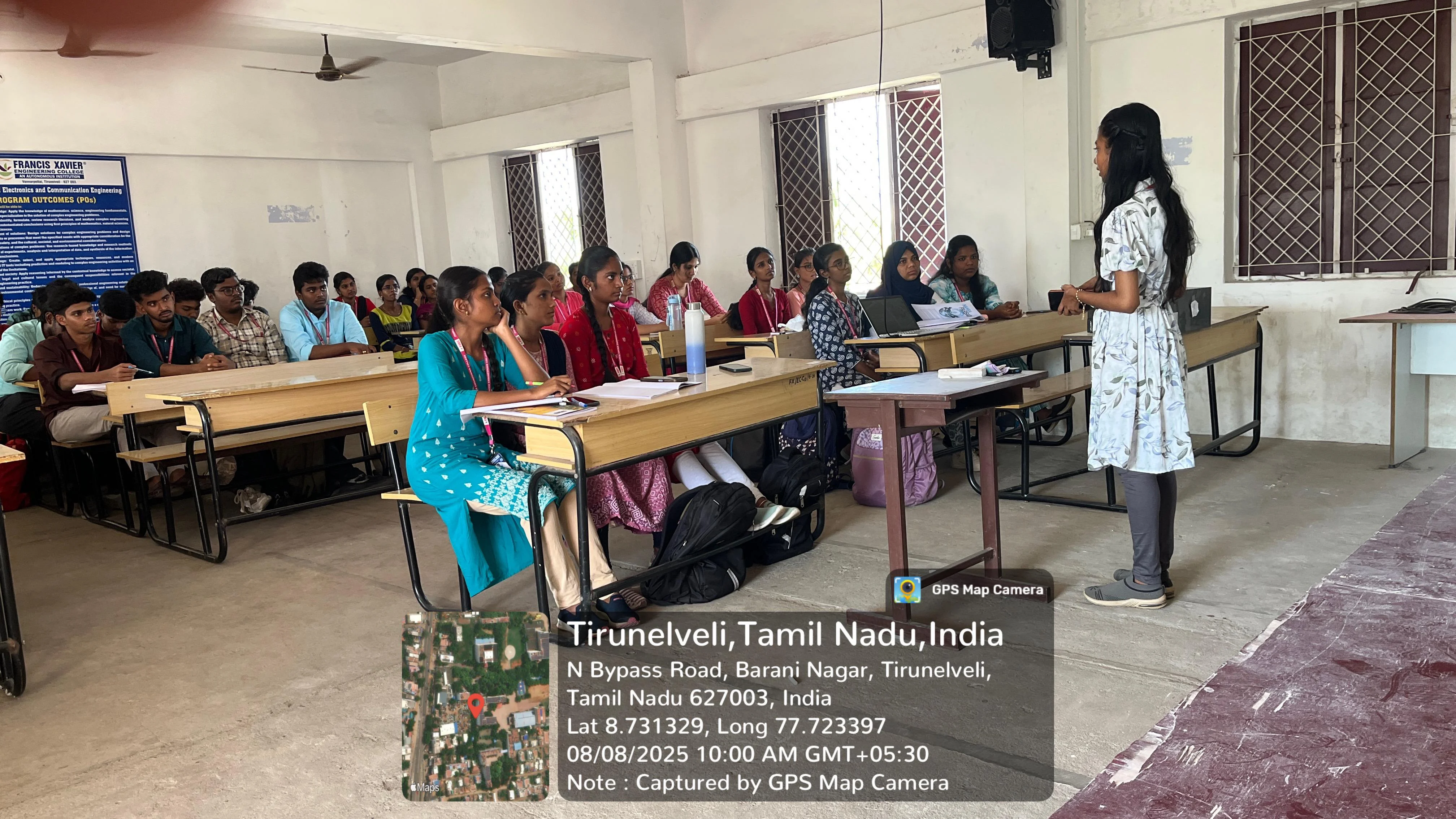 On 08.08.2025 a session was organized on the title “Student Entrepreneur: A Road Map to Become a Startup Founder” by the Entrepreneurship Development Cell and Institution’s Innovation Council in association with the Computer Science and Engineering department. The session was handled by Ms. M. Jerlin, Student Entrepreneur, Department of AI&DS, FXEC. 50 II CSE C students and 1 faculty participated in the program. This event was coordinated by Ms. M. Keerthana, Assistant Professor, Department of English, Francis Xavier Engineering College.