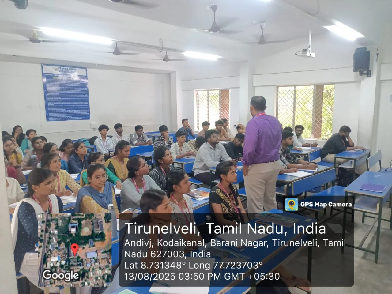 On 04.07.2025 to create anawareness camp was organized on the title “Session with Innovation and Startup Ecosystem Enabler” by the MSME Business Incubator and IIC in association with the Entrepreneurship development cell. The session was handled by Mr G Simiyon, Assistant Director, Branch MSME-DFO, Tirunelveli.7 students and 48 faculties participated in the program. This event was coordinated by Dr K Lakshmi Narayan, Professor, Head FXEC Business Incubation Centre, Dr Lourdes Poobala Rayen, IIC Director and Dr R Prem Ananth, IIC Convenor of FXEC.