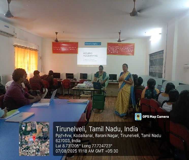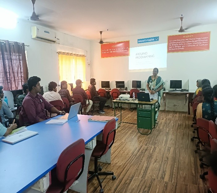 On August 7, 2025, the MCA Department, in collaboration with the DAWN Association, hosted a guest lecture on "IoT Simulation" using TinkerCAD, held at the MCA Lab. The event was introduced by Mrs. D. Angeline Ranjithamani, Head of the MCA Department, who welcomed the resource person.