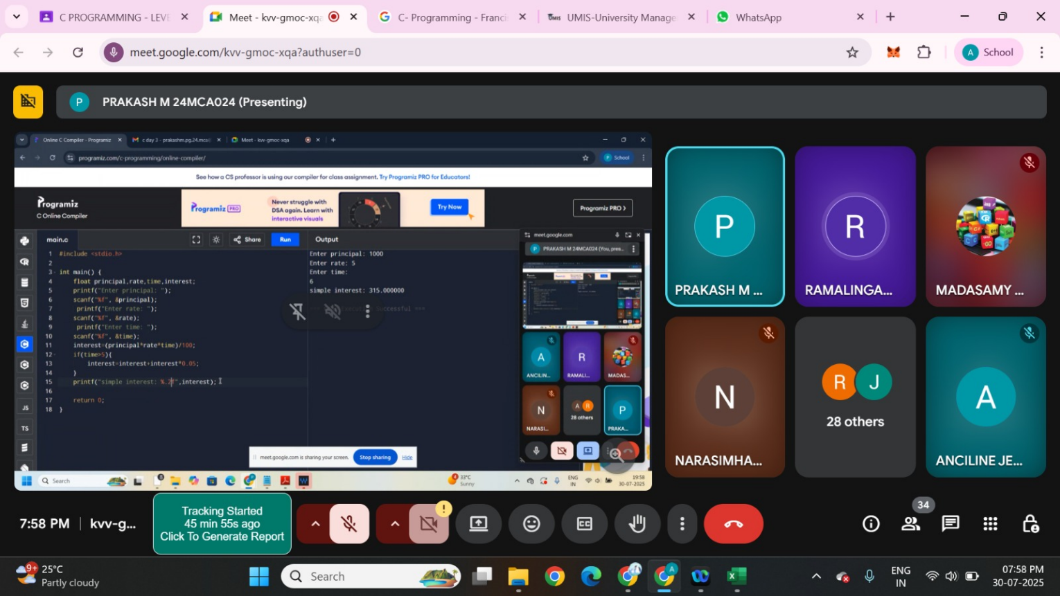Throughout the training, participants actively engaged in the learning process and gained a solid understanding of essential C programming constructs. The sessions emphasized both theoretical knowledge and practical application, helping students build a strong programming foundation.